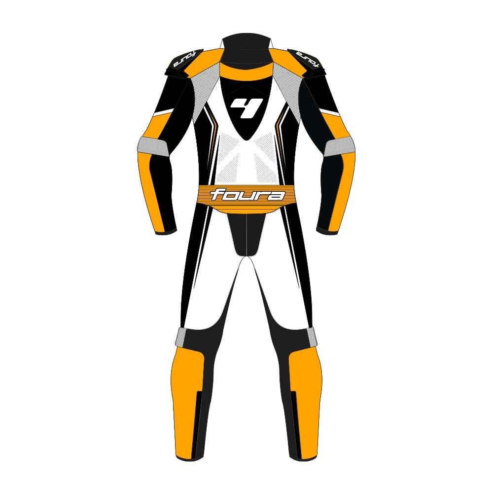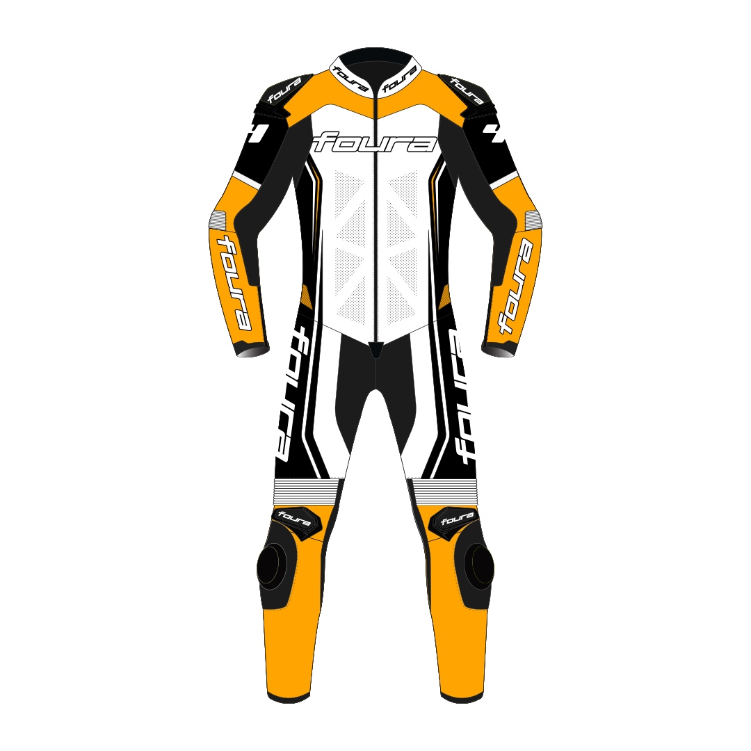 Foura Rush 1 PC Motorfiets Leer Pak Zwart/Wit/Oranje