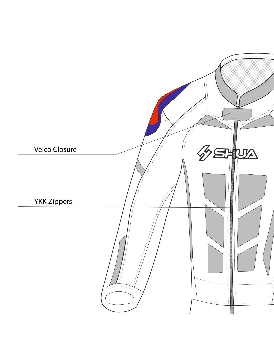- Panneaux en cuir élastiqués aux genoux, à la taille au dos, aux emmanchures au dos pour un mouvement confortable et flexible