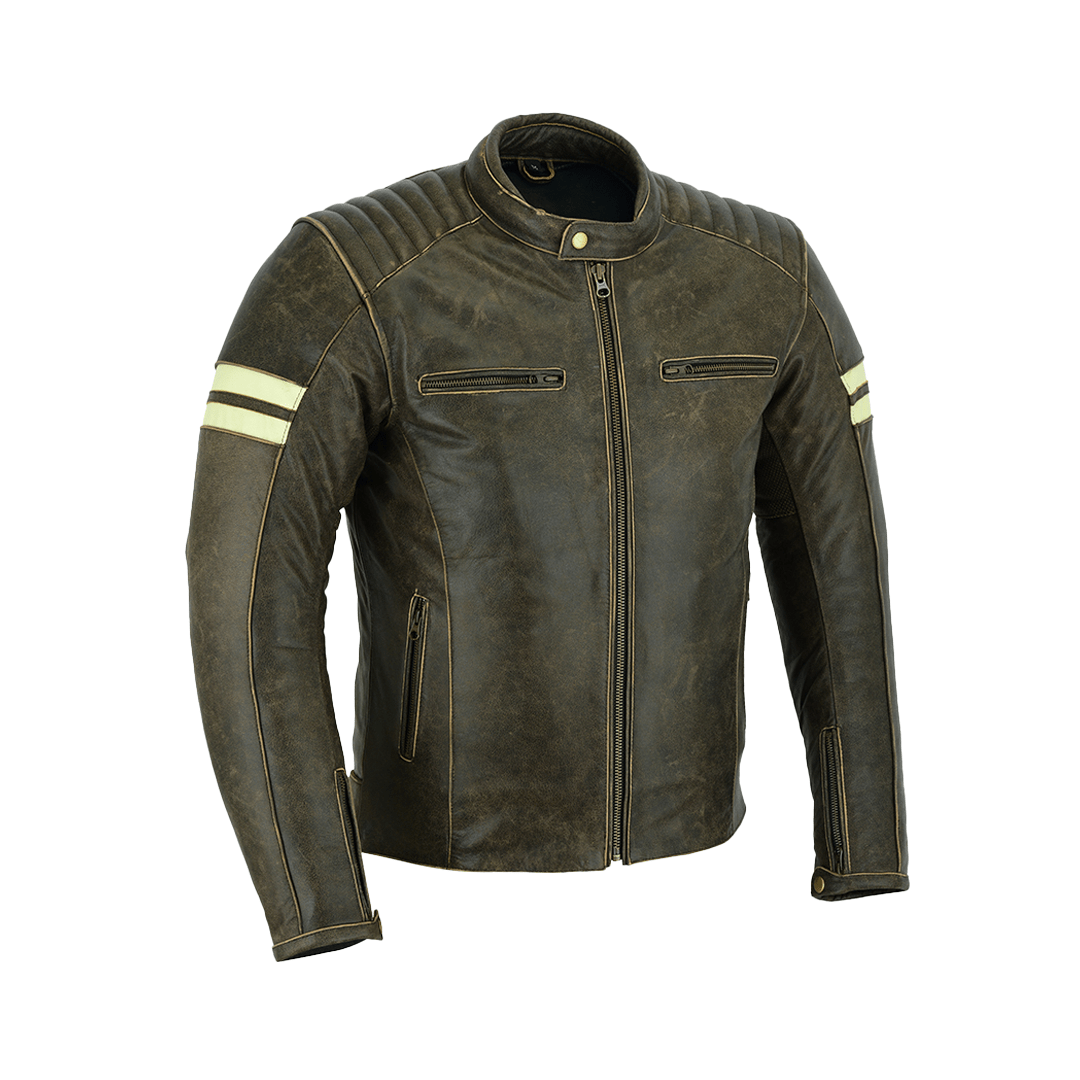 Road Breed Thunder Motocicleta Cuero Chaqueta Marrón